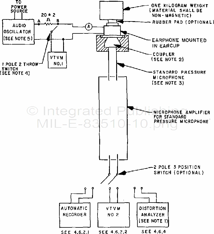 MIL-E-83510 Earphone Element (S/S By Mil-Prf-25670/1 And Mil-Prf-25670/2)This specification covers a dynamic earphone element having an impedance of 20 ohms with an extended frequency and a flat response (see 6.1). The element is part of the earcup assembly of the M83511/7-01 headset-microphone. The earphone is designed to operate in an ambient peek-noise level of 105 dBA.